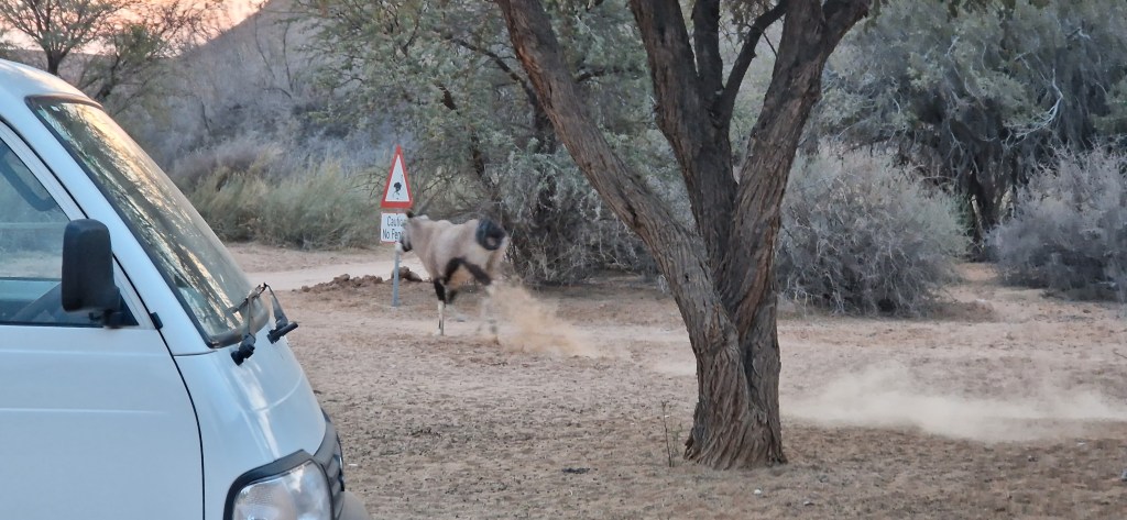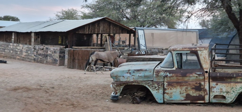 Am Abend spazierte noch eine langhörnrige Oryx gemütlich quer durch das Gelände.