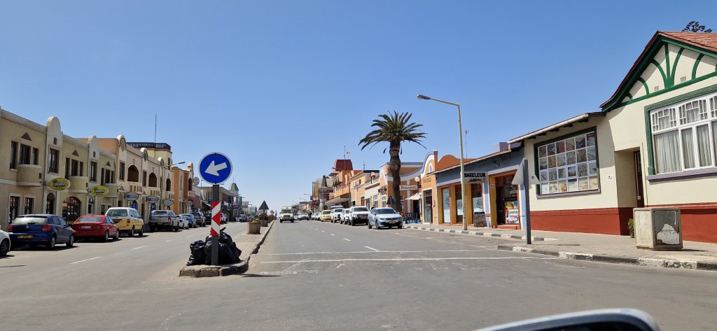 Swakopmund trug mal den Titel „Südlichstes Seebad Deutschlands“. Herrschaftliche Villen, eine Strandpromenade, die Seebrücke „Jetty“ und kulinarische Etablissements verleihen dem Städtchen einen ähnlichen Flair wie vergleichbare Orte an der deutschen Ostseeküste. Sehr markant sind die extrem breiten Straßen und trotzdem inflationär auftretende Kreisverkehre. Wenden in drei Zügen ist hier in der Fahrschule obsolet.